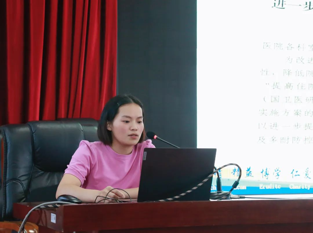 药剂科的药师唐惟微对国家抗菌药物相关政策、监测目的要求及相关指标进行一一解读,同时结合医院实际对我院抗菌药物监测指标进行安排。