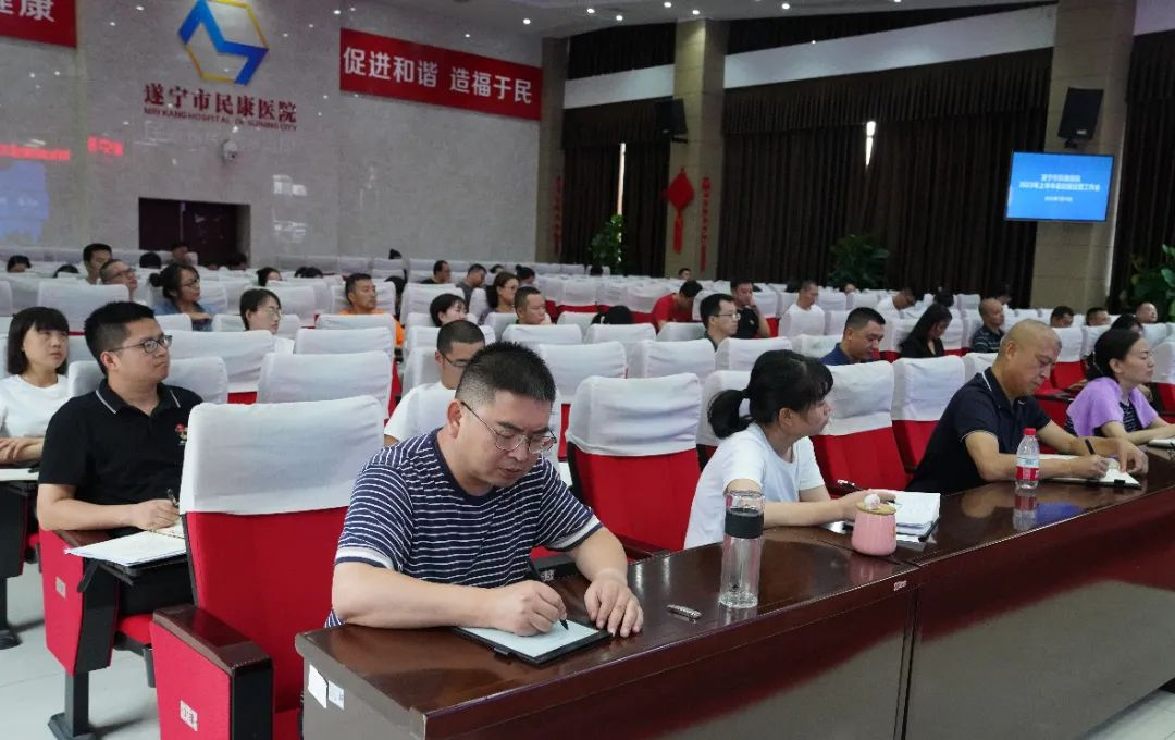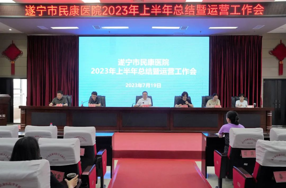 7月19日下午,遂宁市第六人民医院(市精神卫生中心、市民康医院)2023年上半年工作总结暨运营工作会召开,总结分析上半年工作情况,详细安排部署下半年工作重点。院长聂红,院党总支副书记廖晓华、副院长黎智、黎阳、王静、院工会主席马丛芳,中层以上干部及业务骨干参加了会议。