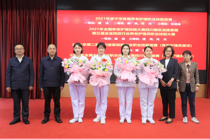 1、在“2021年遂宁市首届养老护理职业技能竞赛”中,唐佳同志荣获一等奖、谭凤及冯杰同志均荣获二等奖、余清清同志荣获三等奖。