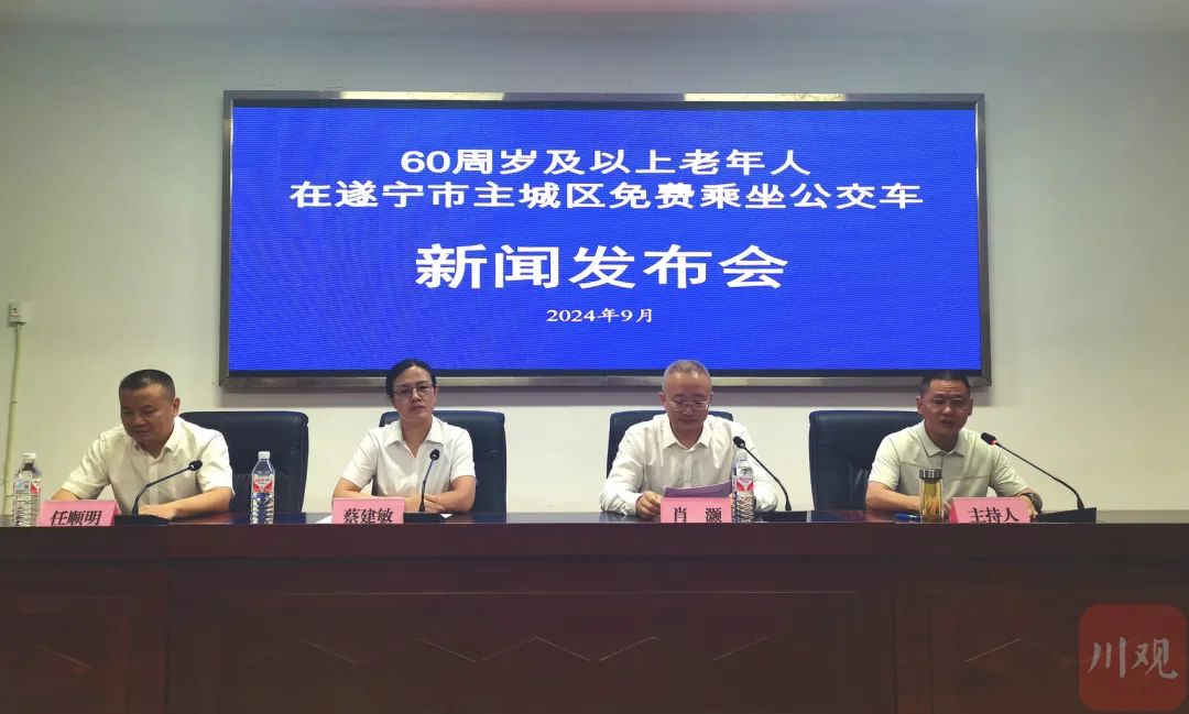 9月30日,遂宁市召开新闻发布会,正式发布《60周岁及以上老年人在遂宁市主城区免费乘坐公交车的实施方案》,从今年10月1日起,全国60周岁以上老年人,仅需刷身份证,即可在遂宁主城区免费乘坐公交车。