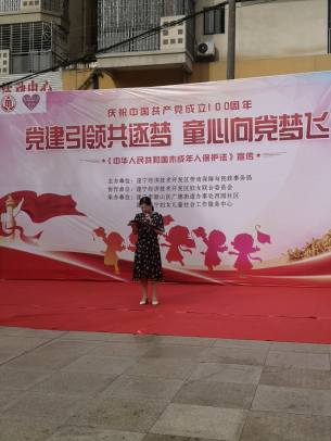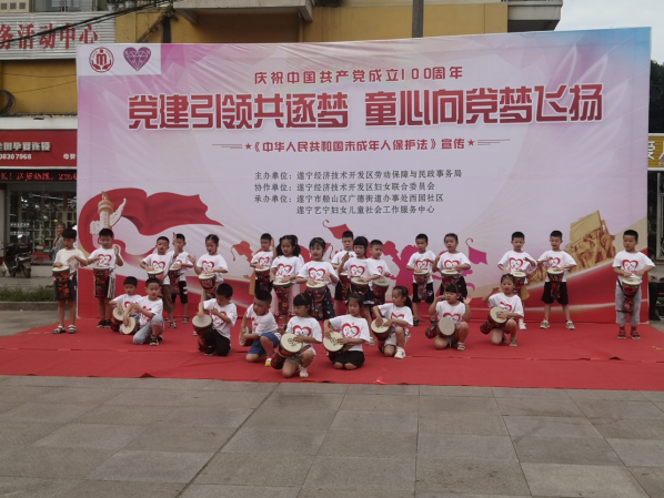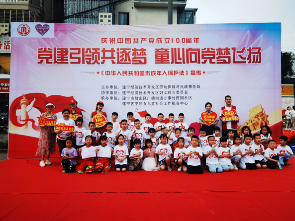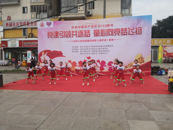 为迎接中国共产党百年华诞,6月30日上午,经开区民政局联合妇联及广德街道办事处在西园社区组织部分留守儿童及群众开展“党建引领共逐梦 童心向党梦飞扬”庆祝建党100周年暨《未成年人保护法》宣传活动。