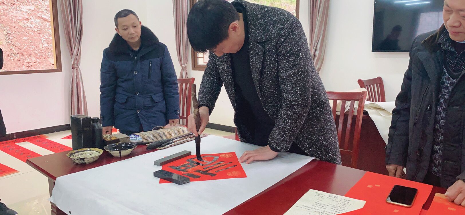 在现场,陈铭、欧阳福现场挥毫泼墨书祝福,将祝福和关怀伴着一幅幅“福”字和一幅幅对联送给敬老院的老人们。