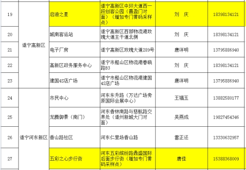 遂宁市主城区(船山区及市直园区)28个便民免费核酸采样点