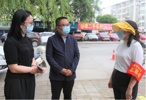 5月17日上午,副院长聂红、王静带领院感科相关负责人到核酸采集点位,就人员调度、物资保障、样本转送、医废转运、院感防控等环节,与辖区社区工作人员进行了沟通。