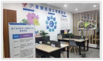 2021年6月,省级社会工作服务体系建设试点项目落地三家镇。在安居区民政局指导下,三家镇党委政府按照镇村两项改革“后半篇”文章和创新城乡社区治理“一个平台优服务”思路推进启动社工站建设,着力构建“1站5室7专项3特色”的平台功能搭建和服务供给矩阵,探索符合基层的社会工作服务特色品牌。