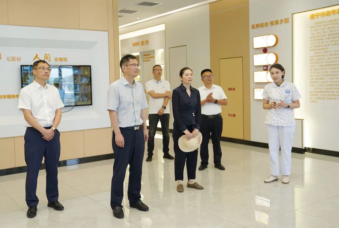 期间,调研组还来到射洪市,先后前往太和街道综合为老服务中心、建设社区、射洪市沱牌区域养老中心,听取“精康融合”、老年助餐以及公办养老机构县级直管等工作开展情况汇报,对当前射洪市民政领域各项重点工作所取得的成效给予了充分肯定,希望继续强化责任担当,稳步提高民政领域公共服务和社会保障水平,不断增强人民群众的获得感、幸福感、安全感。