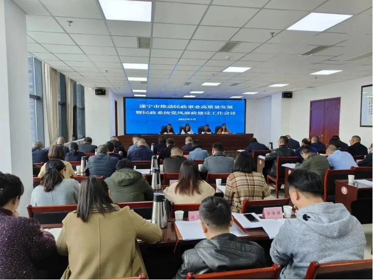 一年之计在于春,发展之计在于拼。2023年3月1日,2023年全市推动民政事业高质量发展暨民政系统党风廉政建设工作会议在遂宁召开。会议深入贯彻习近平新时代中国特色社会主义思想,全面贯彻党的二十大精神和省委十二届二次全会、市委八届六次全会精神,认真落实2023年全国、全省民政工作会议精神,深入贯彻落实市委市政府“全力拼经济、合力搞建设”决策部署,总结全市2022年民政工作,安排部署2023年全市民政重点工作。市政府副市长吴新春出席会议并讲话。市政府副秘书长谭恢军主持会议。市民政局党组书记、局长赵维强对2022年全市民政工作作总结,并安排部署2023年民政重点工作。