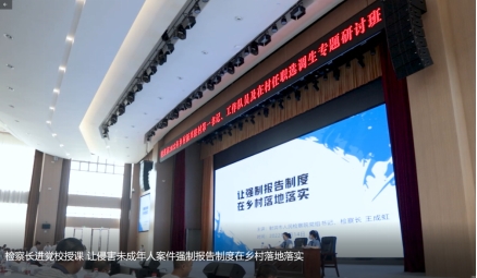 王成虹在辅导报告中总结回顾了2021年全省未成年人法律监督工作开展情况以及存在的突出问题;全面阐释了强制报告制度形成背景、过程;并结合权威数据、典型案例,就强制报告制度的效果体现、强制报告的含义、原则、报告主体、报告情形、报告程序、报告环节和难点进行了深入细致的分析解读,重点对村委会实行侵害未成年人案件强制报告制度的职责进行了强调。