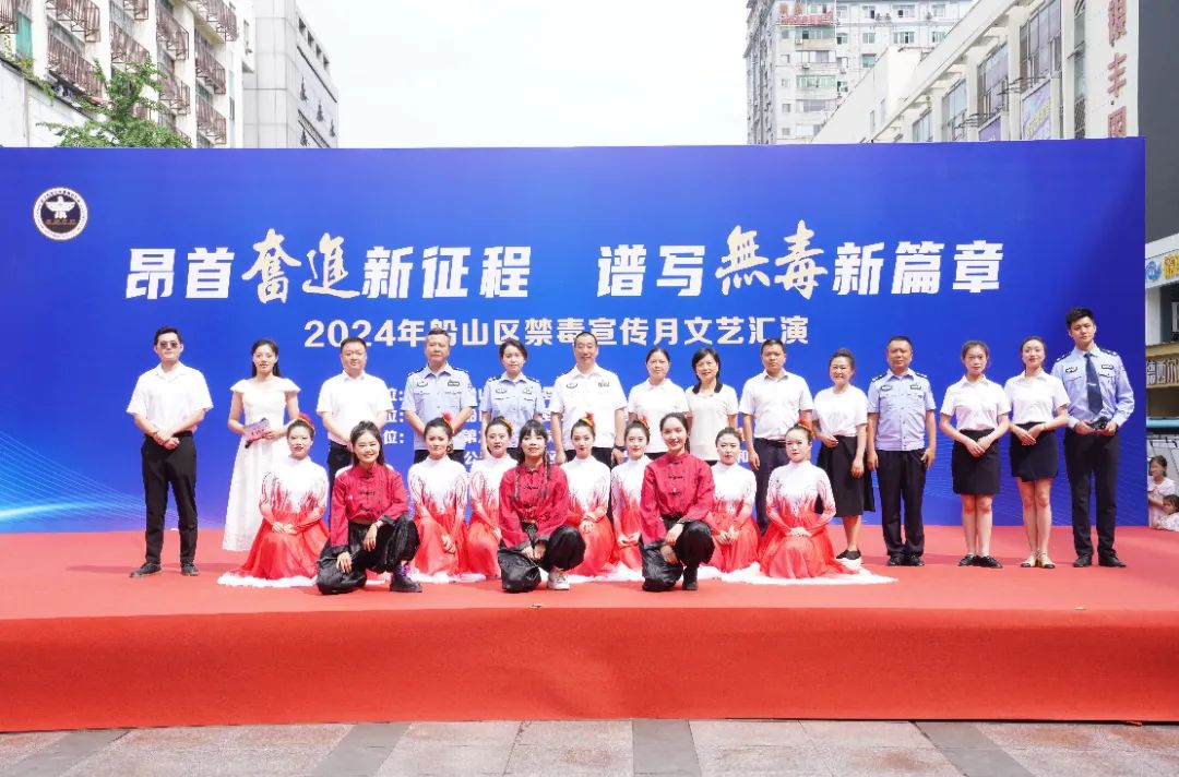 今年6月是第14个全民禁毒宣传月,为进一步提高公众的毒品认识,倡导绿色健康无毒生活。6月29日上午,由船山区禁毒委员会主办、船山区禁毒办承办、遂宁市第六人民医院等单位协办的以“昂首奋进新征程·谱写无毒新篇章”为主题的禁毒宣传月文艺汇演活动在市城区商务区举行。