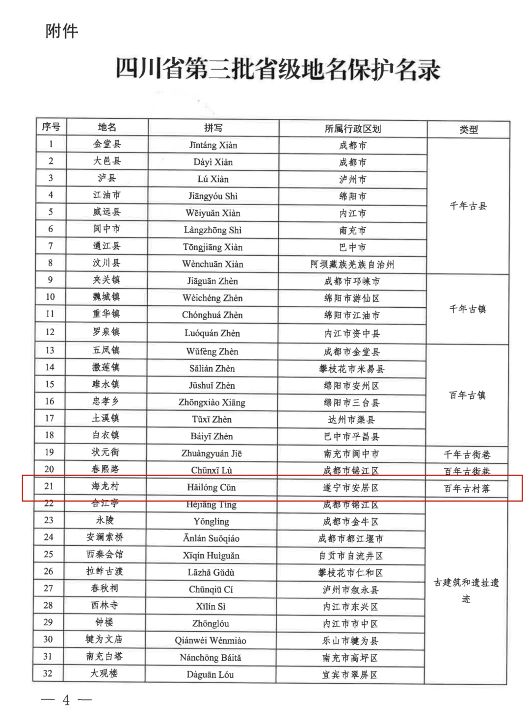 我市2个地名入选《四川省第三批省级地名保护名录》