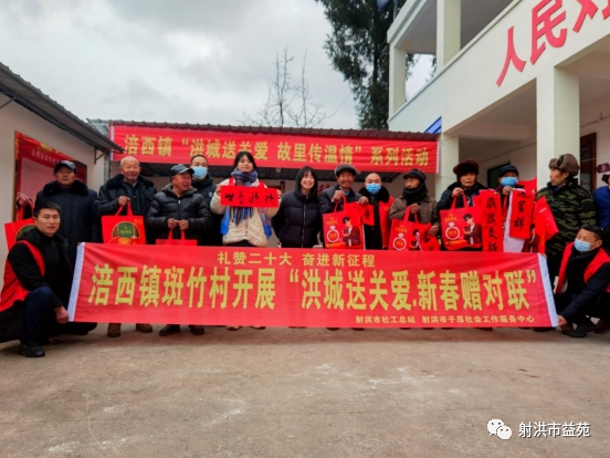 1月16日在新春即将来临之际,射洪市民政局携手射洪市涪西镇斑竹村、射洪市社工总站、射洪市子昂社会工作服务中心在射洪市涪西镇斑竹村开展“洪城送关爱,新春赠对联”迎新春活动。为了此次活动的顺利开展,工作人员提前一周进行前期准备工作,通过贴通知、发放宣传单等方式大力宣传,用实际行动确保本次活动的顺利进行。