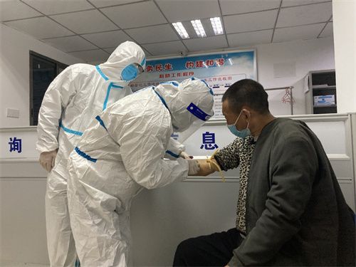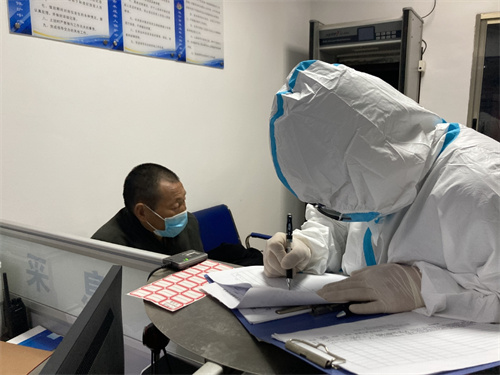 到达救助站后,防疫工作人员对大爷进行了消毒、测量体温、登记基本信息、核酸检测和抽血检查。工作完成后,大爷在防疫人员的带领下前往住宿区。