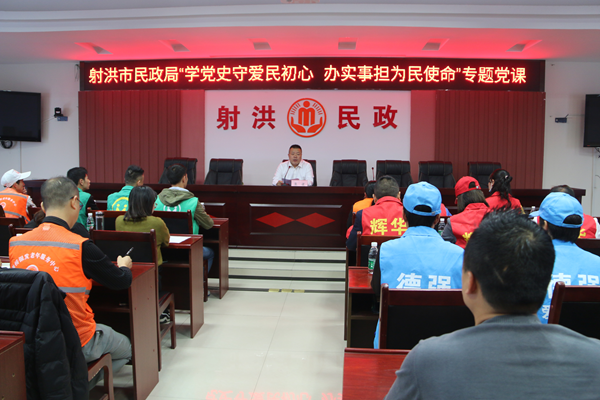 为推进党史学习教育深入开展,扩大党史学习覆盖面,增强学习效果,4月28日,射洪市民政局党组书记为承接2021年射洪市居家养老服务工作的社会组织上了一堂别开生面的党课。党课以“学党史守爱民初心 办实事担为民使命”为主题,岳之恒康养服务有限公司、辉华居家养老服务有限公司、康桥银发老年服务中心等9家居家养老服务社会组织的30余名爱心社工参加学习。