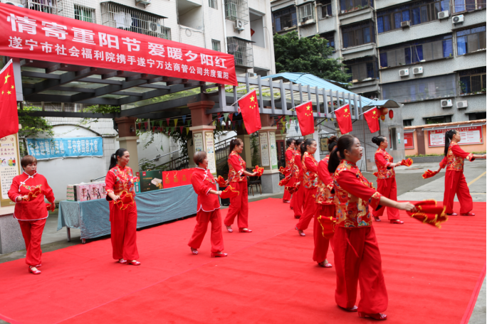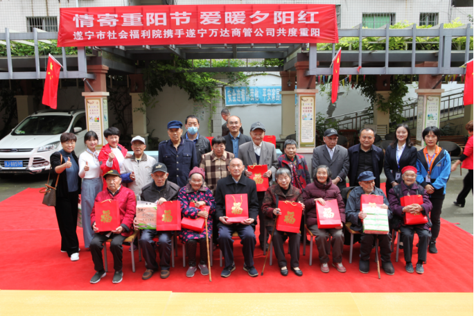 夕阳无限好,人间重晚情,重阳节到来之际,为弘扬中华民族敬老、爱老、助老的传统美德,营造重阳节的节日氛围,进一步活跃老年人身心。10月13日上午,遂宁市社会福利院携手遂宁万达商管公司开展“情寄重阳节 爱暖夕阳红”主题庆祝活动,邀请福利院的老人及家属欢聚一堂,共度重阳佳节。