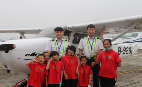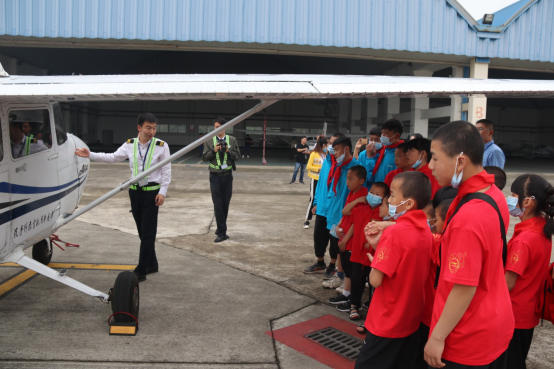 小朋友们近距离接触了塞斯纳训练飞机,同飞行学员哥哥面对面交流互动,学习并体验训练飞机驾驶规则和管理要求。
