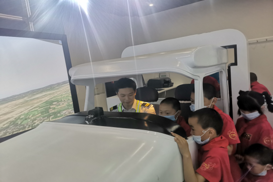 活动以驾驶模拟机拉开了帷幕,小朋友们进入模拟驾驶舱,宛如进入了真正的飞机机舱,“起飞”“飞行”“降落”……让他们见识到飞行学院先进的科技、飞行员熟练的操作、沉稳的发挥和强悍的实力。