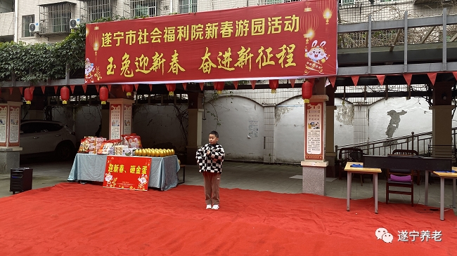 “金虎腾天辞旧岁 玉兔跃地舞新春”。为深入学习贯彻党的二十大精神,丰富院内特困人员、休养老人以及干部职工的精神文化生活,营造欢乐祥和的节日氛围,1月17日上午,遂宁市社会福利院携手遂宁万达商管公司开展“玉兔贺新春 奋进新征程”新春游园活动。本次活动以“游园”的形式开展,在院内设置了多项活动,让大家体会富有年味的中国年。