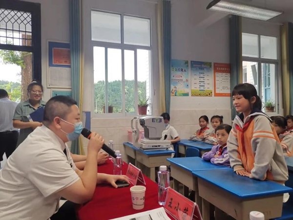 “近视有哪些坏处?”“我们要如何保护我们的眼睛?”爱尔眼科的医生以互动问答的形式,生动形象的为全校儿童讲解了近视的危害,让同学人认识到保护眼睛的重要性并科学护眼知识。随后,市救助管理站工作人员和慈航社工一同帮助师生进行视力检查,建立视力健康档案,并为学校师生发放视力自测表和科学护眼宣传册。