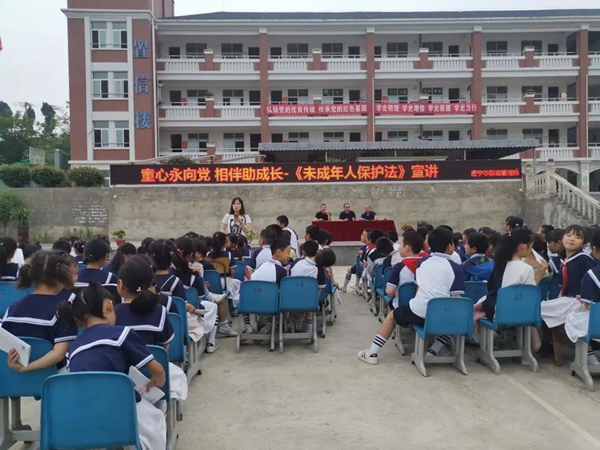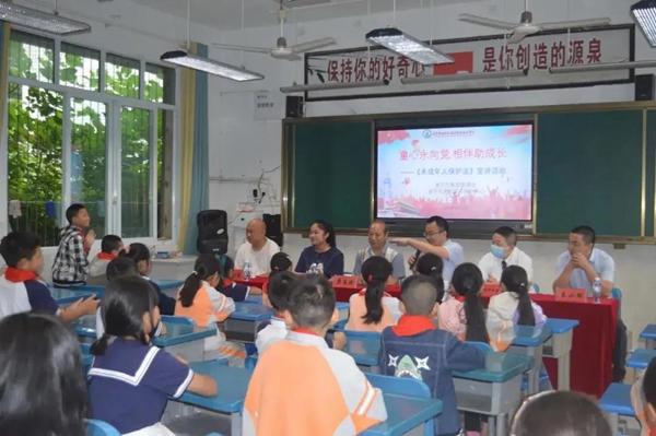 儿童关系国家未来和民族振兴,关系亿万家庭美满幸福。6月1日新修订的《中华人民共和国未成年人保护法》正式施行,6月为集中宣传月。为加大《未成年人保护法》的宣传力度,提高未成年人的法律意识和依法保护自身合法权益的能力,帮助未成年人健康成长,遂宁市救助管理站带领遂宁慈航社工、法律专家及爱尔眼科医院志愿者,于6月2日、6月17日分别到安居区拦江镇凉风小学与船山区桂花镇南垭小学开展“童心永向党,相伴助成长”系列主题活动——《未成年人保护法》宣讲活动及健康知识讲座进校园。