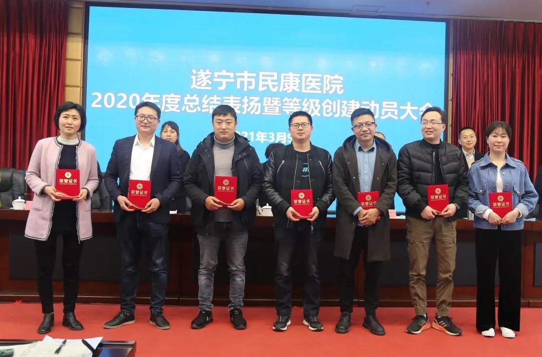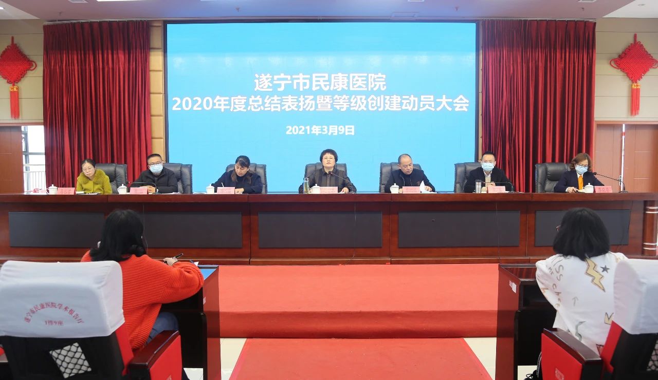 3月9日下午,遂宁市民康医院召开2020年度总结表扬暨等级创建动员会,总结回顾2020年和“十三五”时期工作,分析今后一个时期面临的新形势新任务,安排部署2021年主要工作,特别对三级医院创建工作作了动员,号召全院干部职工举全院之力、集全院之智,全力以赴争创三级专科医院。