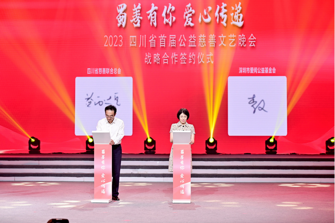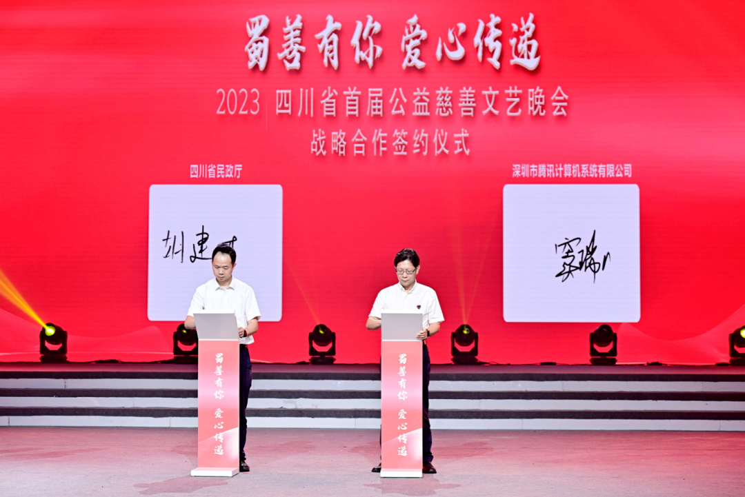晚会上,四川省慈善联合总会与深圳市爱阅公益基金会现场签订战略合作协议,携手推动少年儿童“读好书”,以高品质阅读推动美好未来。四川省民政厅与腾讯公司现场签订了战略合作协议,用科技赋能民政事业发展,激发“科技向善”的力量。
