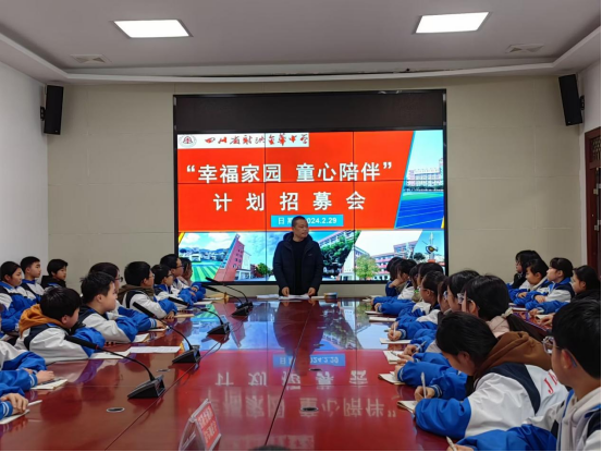 2月29日,在射洪市民政局指导下,射洪市金华中学率先启动了“幸福家园·童心陪伴”子计划——“蓝信封”书信笔友招募会,近50名初一学子报名参加了本次活动。