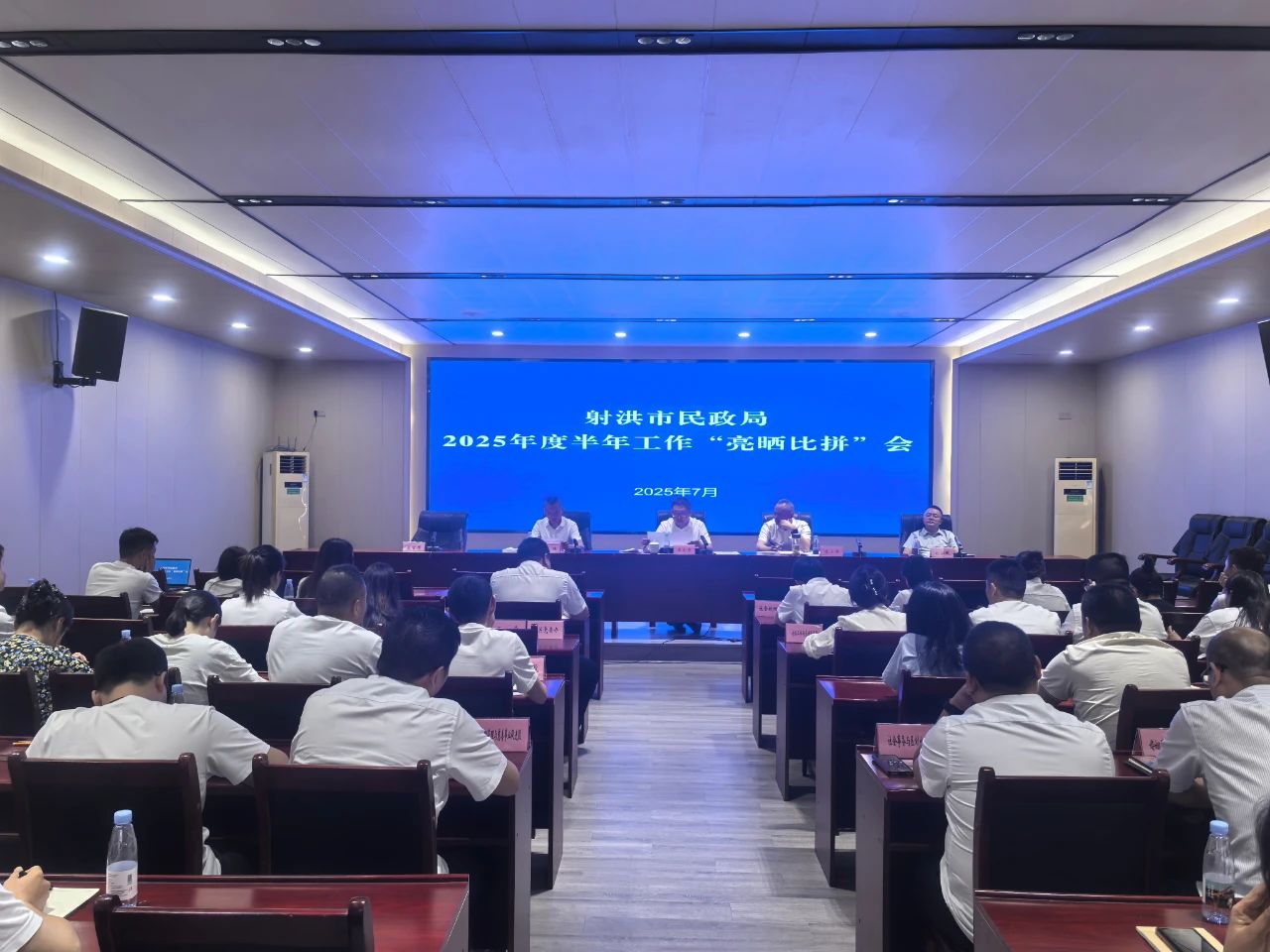 7月10日,射洪市民政局组织召开2025年度半年工作“亮晒比拼”会,通过亮晒比拼、以赛促学的方式,总结上半年民政工作,科学谋划下半年重点任务。