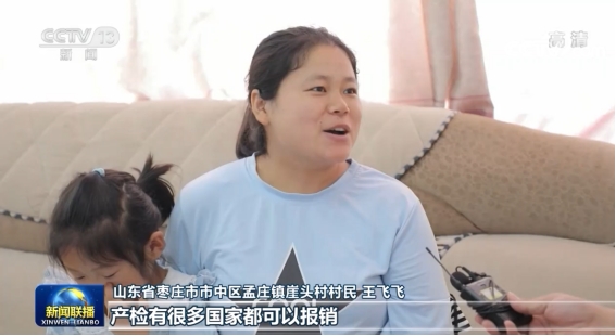 山东省枣庄市市中区孟庄镇崖头村村民王飞飞:“现在国家政策比较好,产检有很多国家都可以报销,现在怀了三宝了,一家人热热闹闹,很开心。”
