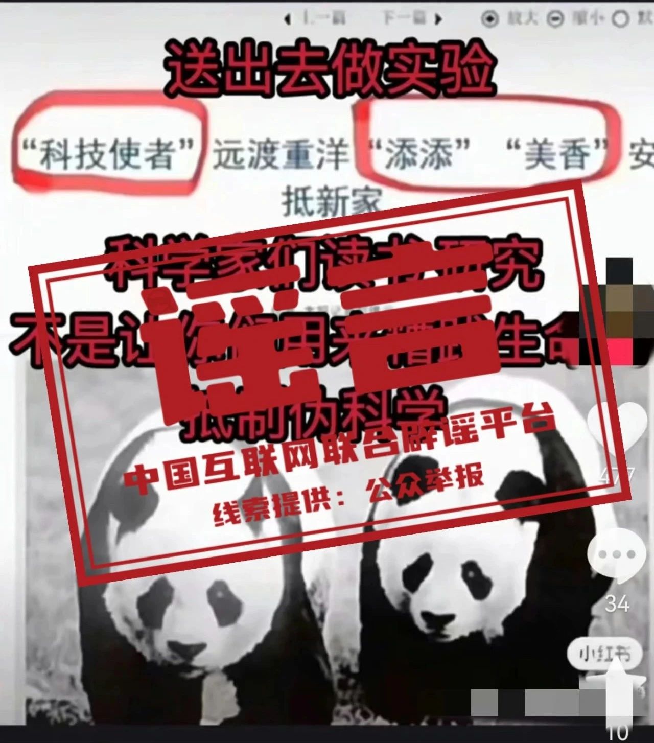 谣 言 大熊猫国际合作是“将大熊猫送给外国人做黑实验”?