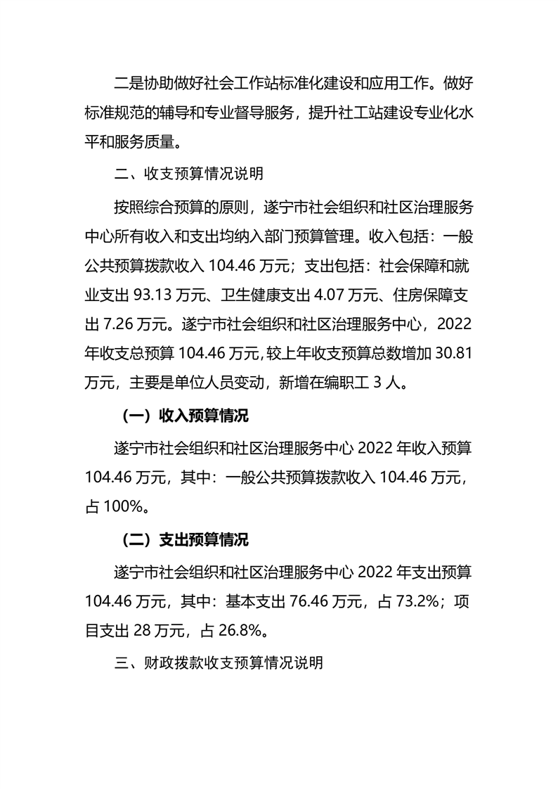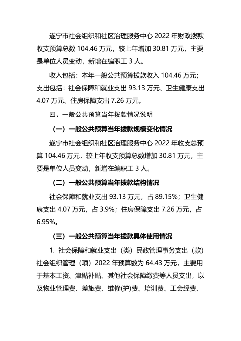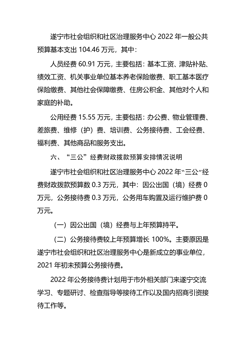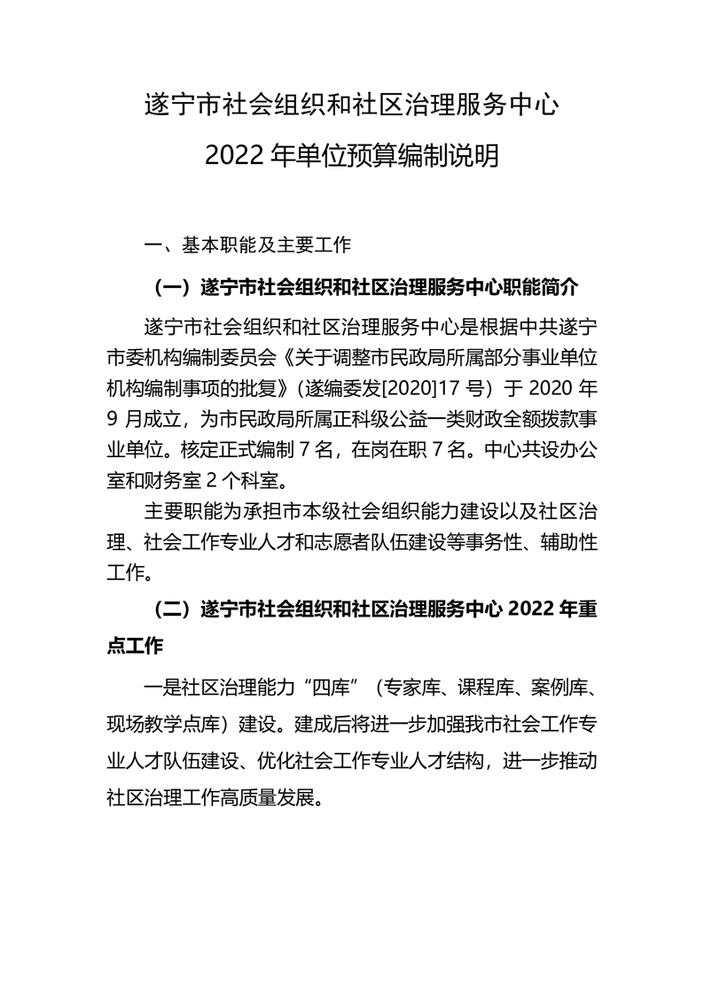 遂宁市社会组织和社区治理服务中心2022年单位预算