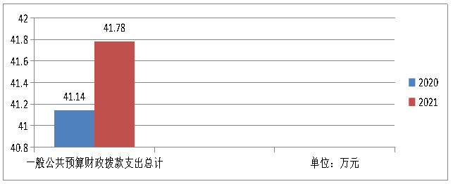 2021年一般公共预算财政拨款支出41.78万元,占本年支出合计的100%。与2020年相比,一般公共预算财政拨款支出增加0.64万元,增长1.56%。主要变动原因是2020年疫情原因,2020年无公务接待费,2021年恢复正常。