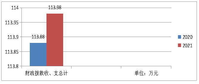 2021年财政拨款收、支总计113.98万元。与2020年相比,财政拨款收、支总计各增加0.1万元,增长0.09%。主要变动原因是基本工资上涨,保险基数调整,保险类支出增加。