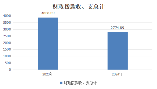 2024年度财政拨款收、支总计均为2774.89万元。与2023年度3868.69万元相比,财政拨款收、支总计各减少1093.80万元,下降39.42%。主要变动原因是运营补贴专项资金和专项债较上年减少。