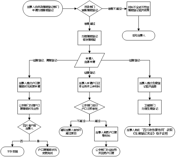 7.办理渠道:婚姻登记窗口办理,婚姻状况变更、夫妻投靠户口迁移、生育登记联办服务网上办理。