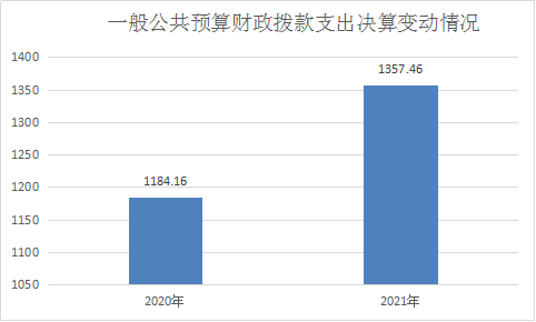 2021年一般公共预算支出决算数为1357.46万元,完成预算154.53%。其中: