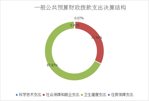 2021年一般公共预算财政拨款支出1357.46万元,主要用于以下方面:科学技术(类)支出5.76万元,占0.42%社会保障和就业(类)支出429.54万元,占31.64%;卫生健康支出921.29万元,占67.87%;住房保障支出0.87万元,占0.07%。