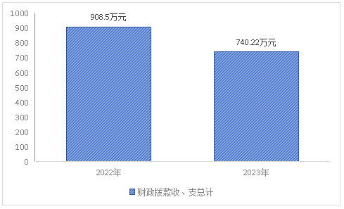 2023年度财政拨款收、支总计均为740.22万元。与2022年度相比,财政拨款收、支总计各减少168.28万元,下降18.52%。主要变动原因一是2023年相比于2022年无一次性支出项目,2022年市救助站新增外墙和污水整修一次性项目;二是2023年相比于2022年无社会福利的彩票公益金预算收入。