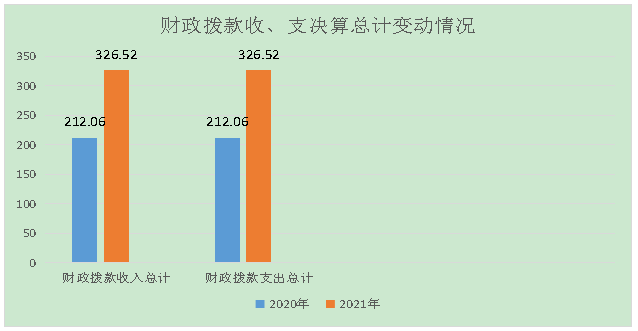 2021年财政拨款收、支总计326.52万元。与2020年相比,财政拨款收、支总计各增加114.46万元,增长53.98%。主要变动原因是八角亭公墓并入,增加公墓辅助管理、服务项目、碑墓方面项目经费。