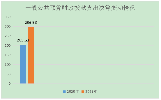 2021年一般公共预算财政拨款支出296.58万元,占本年支出合计的90.83%。与2020年相比,一般公共预算财政拨款支出增加93.05万元,增长45.72%。主要变动原因是增加公墓辅助管理、服务项目、碑墓方面项目经费。