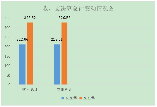 2021年度收、支总计326.52万元。与2020年相比,收、支总计各增加114.46万元,增长53.98%。主要变动原因是八角亭公墓并入,增加公墓辅助管理、服务项目、碑墓方面项目经费。