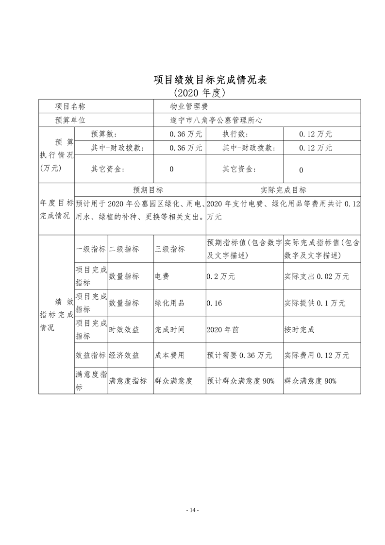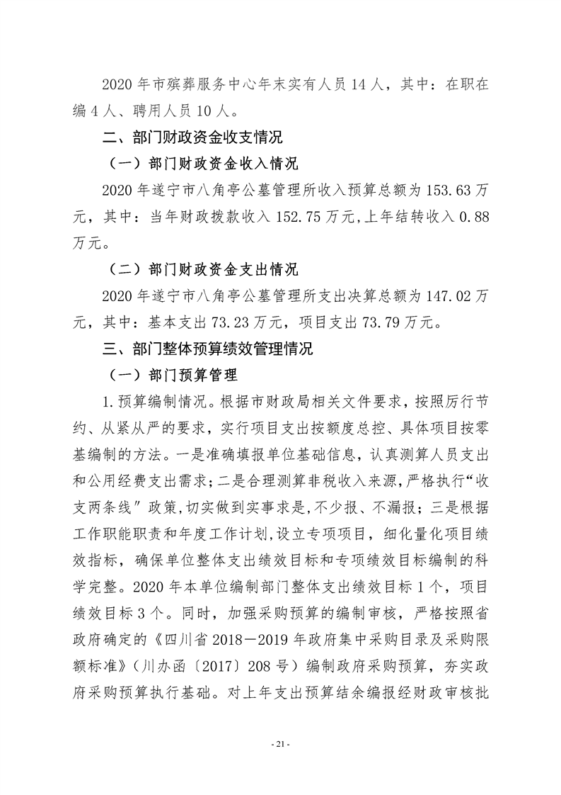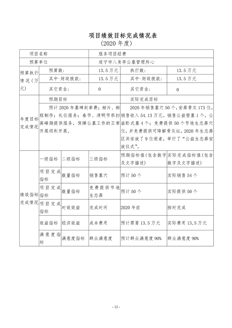 2020年度 遂宁市八角亭公墓管理所部门决算