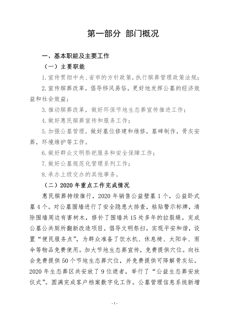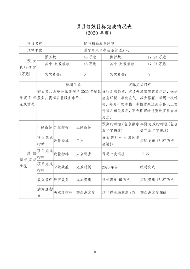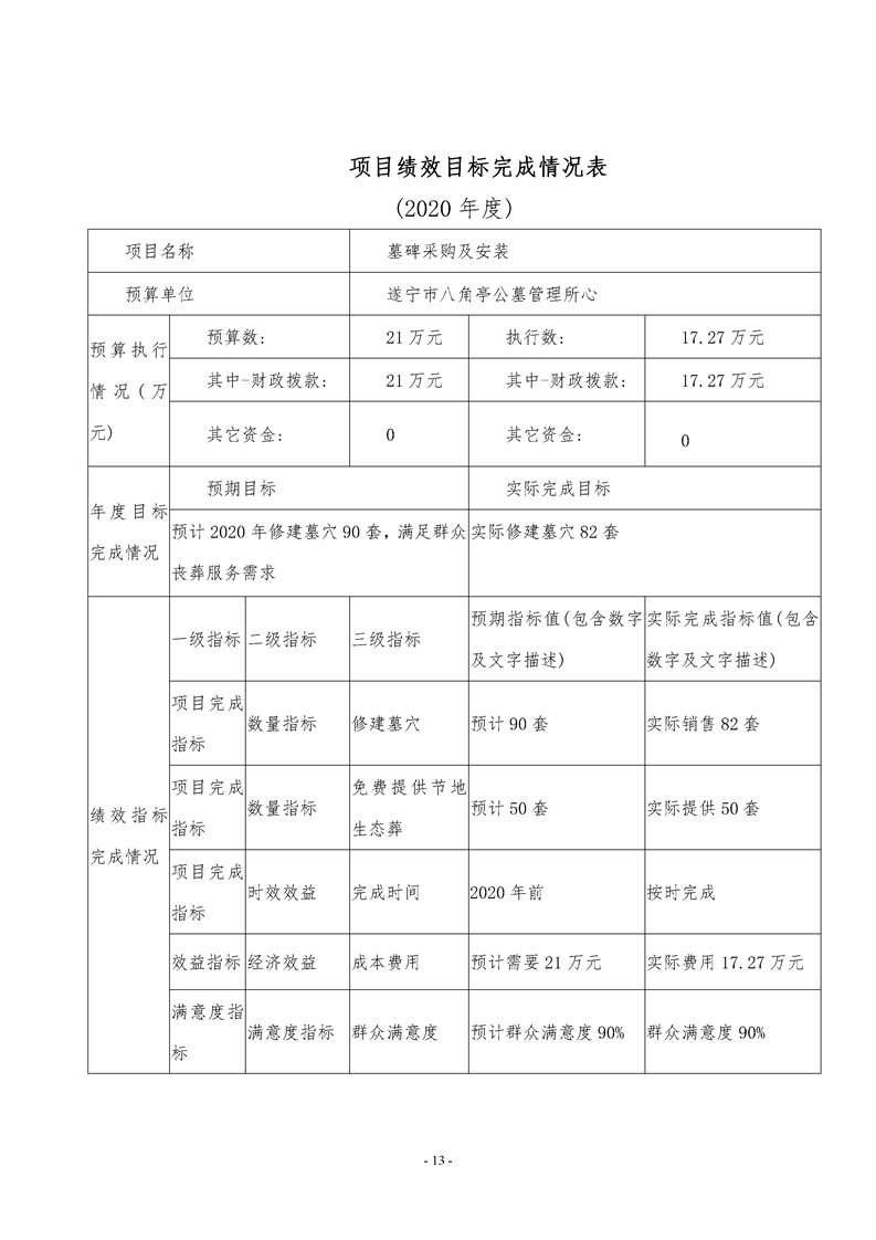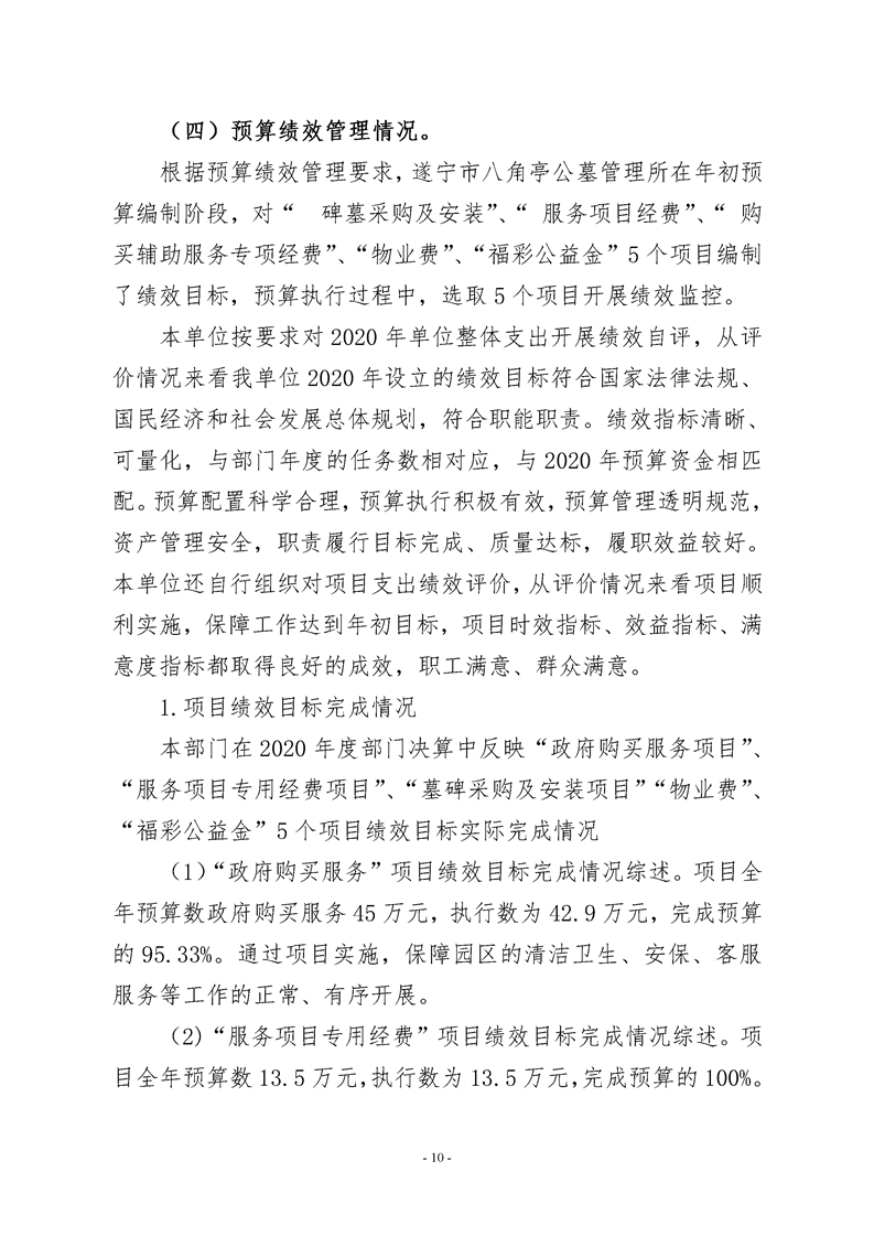 2020年度 遂宁市八角亭公墓管理所部门决算