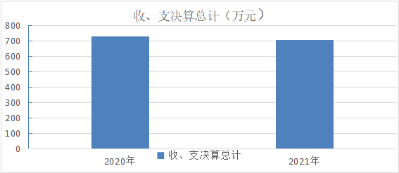 2021年度收、支总计705.26万元。与2020年相比,收、支总计各减少24.88万元,下降3.4%。主要变动原因一是较2020年相比年初结转结余数较少;二是人员结构调整。