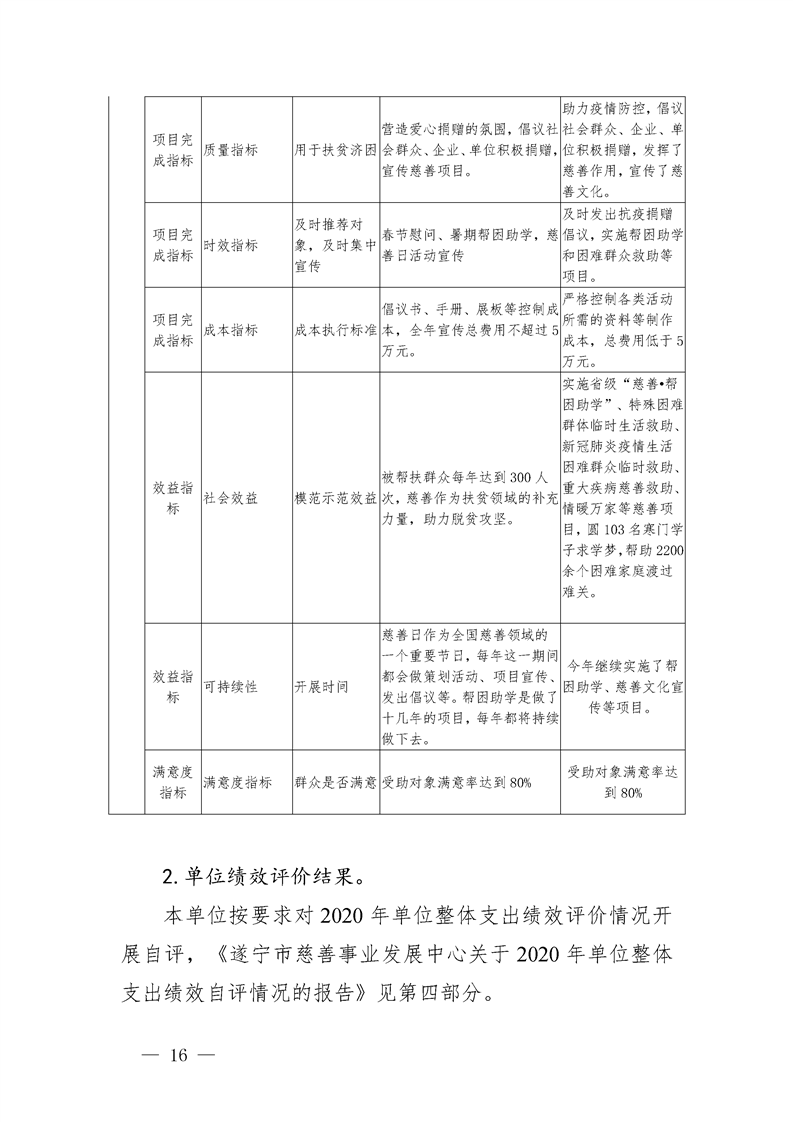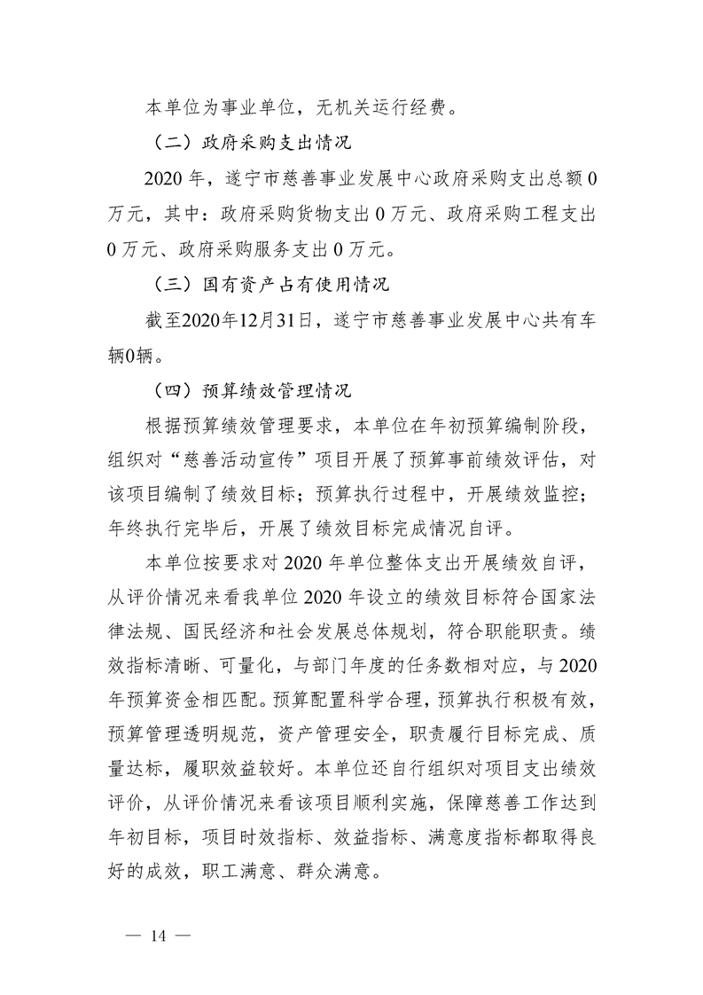 2020年度四川省遂宁市慈善事业发展中心部门决算